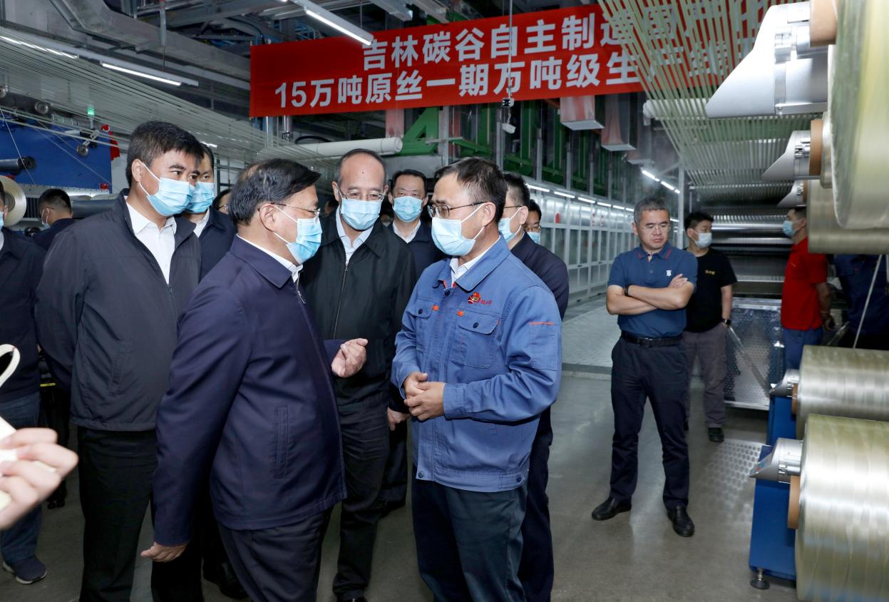 9月1日,省委副書記、省長韓俊,省政府黨組副書記、副省長吳靖平在市委書記賀志亮,市委副書記、市長王吉陪同下到吉林化纖15萬噸碳纖維原絲項目進行調研。集團公司領導宋德武、孫小君、孫玉晶、王宏參加調研。韓俊指出,吉林化纖碳纖維產(chǎn)業(yè)規(guī)模大、牌號全,已經(jīng)成為碳纖維領軍企業(yè)。