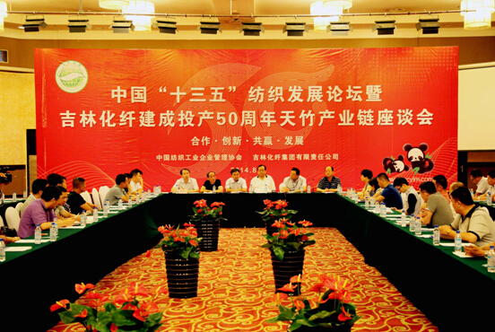中國(guó)“十三五”紡織發(fā)展論壇暨吉林化纖建成投產(chǎn)50周年產(chǎn)業(yè)鏈座談會(huì)現(xiàn)場(chǎng)。